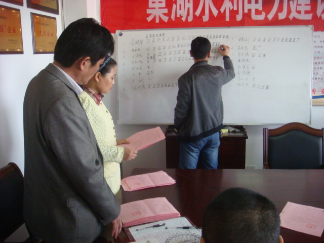 巢湖水利電力建設有限公司換屆選舉股東會于2015年4月12日9時在公司會議室召開,會議由宋國華同志主持。經現場股東投票表決產生董事如下:宋國華、劉來發、李業中、曾勛德;由董事推選宋國華為董事長。經現場股東投票表決產生監事為李良潤。